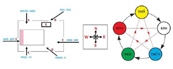 - Đối với người mệnh Hỏa, hướng giường ngủ thuận lợi là hướng Nam, hướng Đông và hướng Đông Nam vì Hỏa hợp Hỏa và Mộc sinh Hỏa.